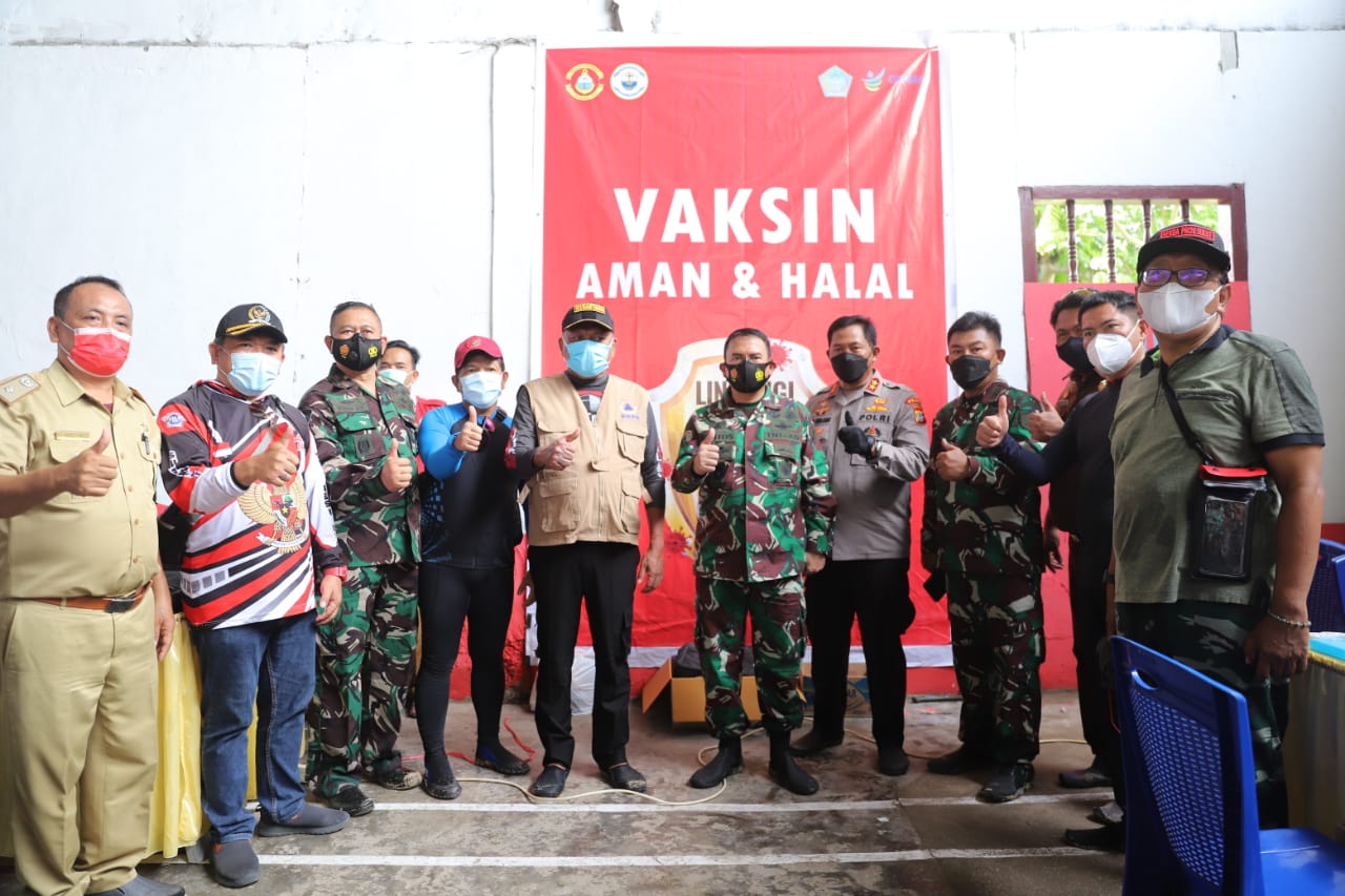 Minut – Mendampingi Pangdam XIII/Merdeka, Mayjen TNI Santos G. Matondang, Danrem 131/Santiago, Brigjen TNI Prince Meyer Putong bersama Gubernur Sulut Olly Dondokambey, Kapolda Sulut Irjen Pol Nana Sudjana beserta segenap unsur Forkopimda lakukan kegiatan peninjauan secara langsung vaksinasi massal yang dilakukan di Desa Tambun Pulau Talise dan Desa Gangga Satu Oulau Gangga, Senin (21/06/2021) kemarin.