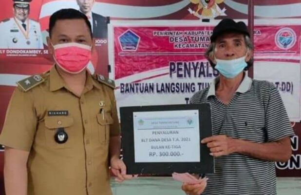 Hukum Tua Desa Tumaluntung Richard S. Kamagi, S.H. mengatakan, “Ini penyaluran Bantuan Langsung Tunai (BLT) di bulan ke tiga Dana Desa Tahun 2021. Jumlah penerima Bantuan Langsung Tunai (BLT) di Desa Tumaluntung Kecamatan Kauditan Kabupaten Minahasa Utara berjumlah 87 KK dengan mendapatkan uang tunai sebesar Rp. 300.000/KK.