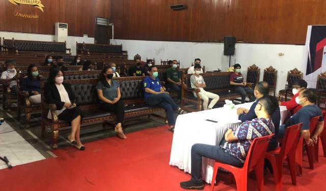 Wakil Ketua Panitia PSR GMIM 2021 Arnold Makawiahe didampingi Sekretaris Aldrin Lombogia bersama Bendahara Didi Tangkau dan Sekretaris Pokja PMB KPRS GMIM Eko Rondonuwu, saat memimpin rapat mengingatkan kembali soal komitmen tiga wilayah yang akan menjadi tuan rumah kegiatan.