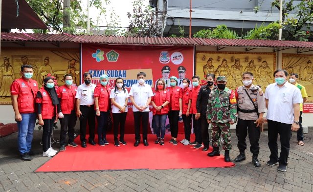 Disini Walikota melihat langsung pelaksanaan vaksinasi kepada warga Klenteng termasuk warga disekitar Klenteng. Walikota berdialog baik dengan tim vaksinasi maupun dengan warga yang datang untuk vaksin.