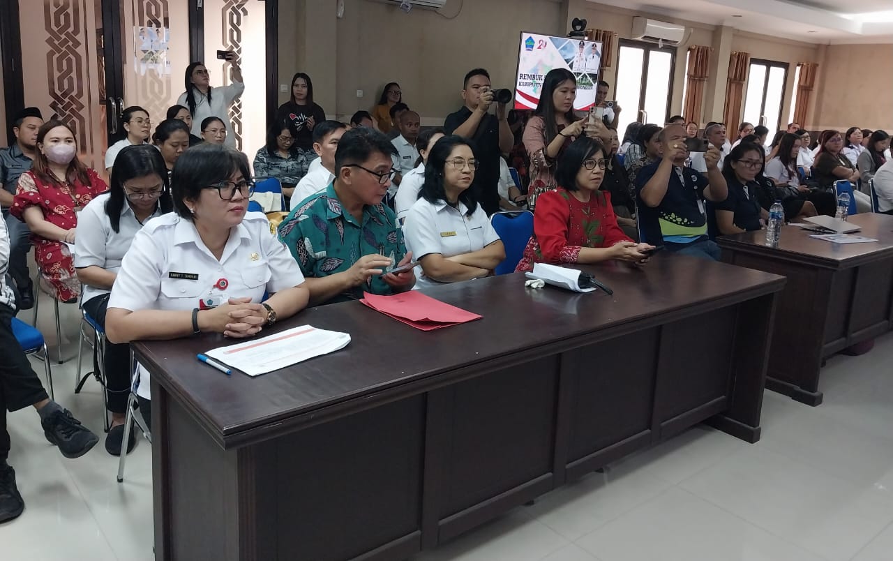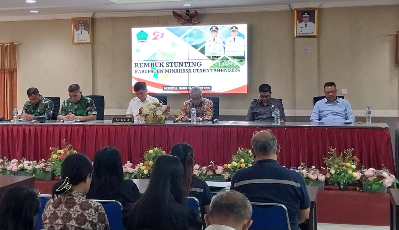 Rapat Konsolidasi Rembuk Stunting Kabupaten Minahasa Utara yang dibuka oleh Sekda Minut Ir. Novly Wowiling, dihadiri oleh Forkopimda, Wakil Ketua DPRD Minut Poultje Paulus Sundalangi, para kepala SKPD, Kepala Puskesmas, Camat dan stakeholder terkait.
