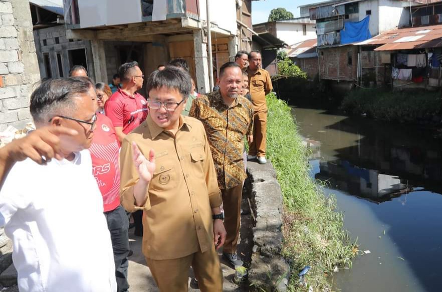 Didampingi Kadis Perkim Peter Eman, Kabid Novy Ponto dan pejabat teknis lainnya, Wali Kota dan Wakil Walikota terus menyusuri lorong-lorong untuk melihat kondisi pemukiman.