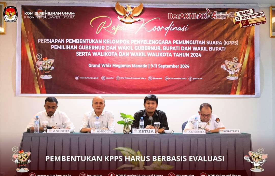 Ketua KPU Sulut Kenly Poluan dalam pembukaan Rapat Koordinasi menegaskan bahwa pembentukan KPPS Pilkada 2024 harus mengacu pada evaluasi proses pembentukan KPPS di Pemilu 2024 yang lalu.
