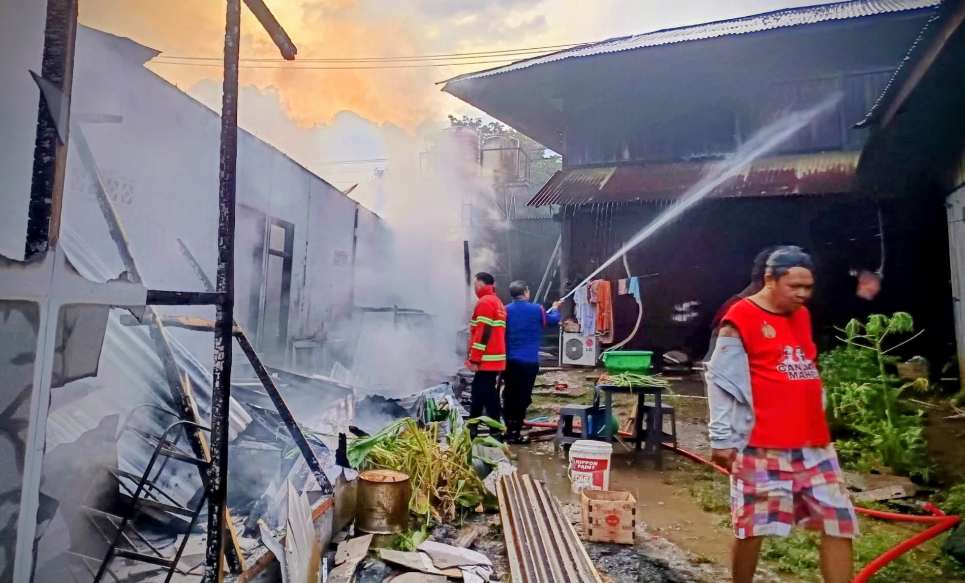 MANADO – Hanya butuh waktu 10 menit sejak menerima laporan terjadinya kebakaran di Kelurahan Bahu Lingkungan IX, personil Dinas Kebakaran dan Penyelamatan (Damkarmat) Kota Manado langsung turun ke lokasi dan berjibaku memadamkan api yang menghanguskan 5 unit bangunan kios semi permanen milik keluarga Mewengkang-Roring di Kelurahan Bahu Kecamatan Malalayang, Kamis (19/03/26).